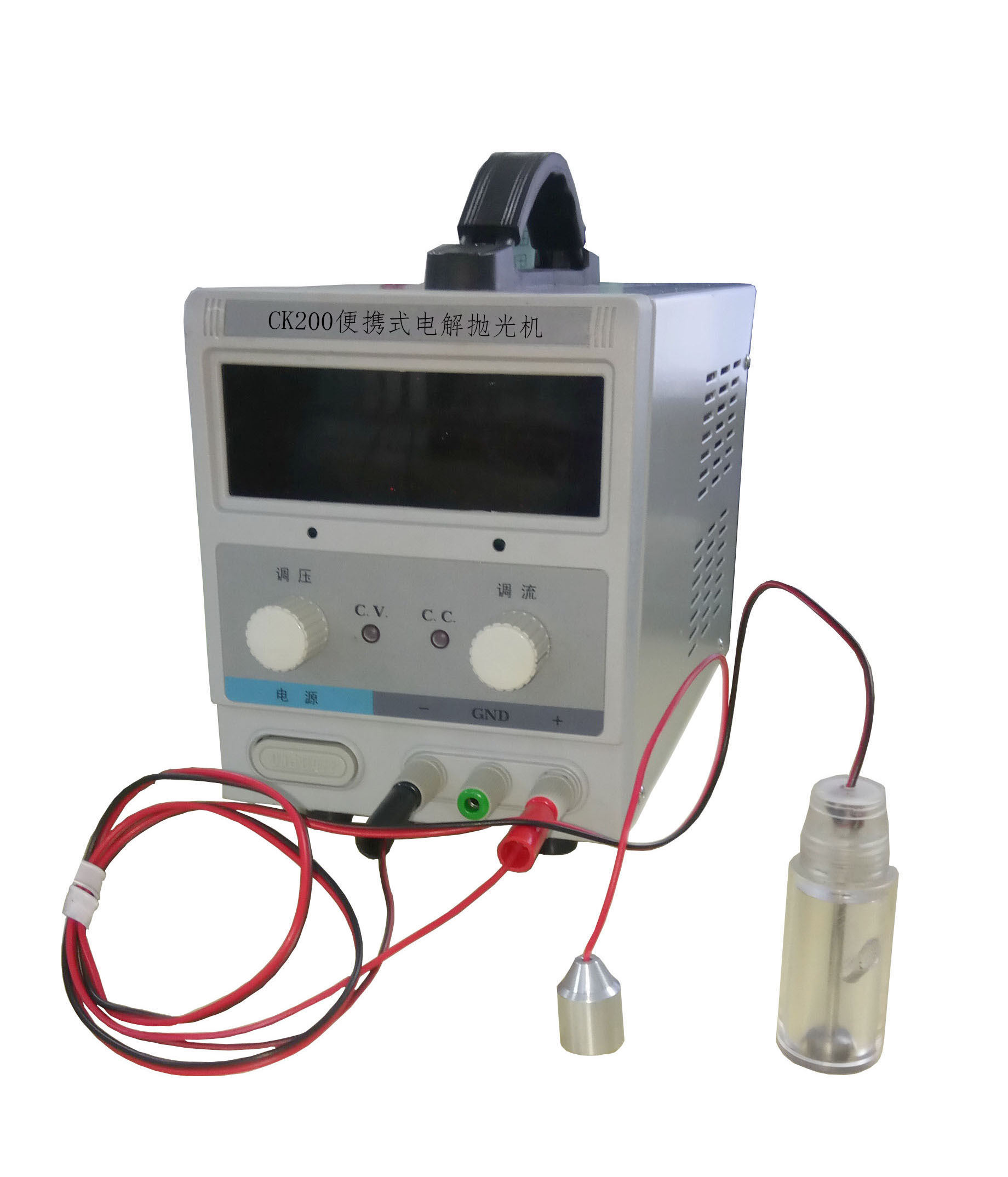 CK200便攜式電解拋光機是一種電表指示的直流電源,特別設計用于現場金相電解浸蝕。也可在額定電流電壓范圍內作為通用電源使用。工作電壓電流用V-A表指示,在負載短路時能自動進行保護。
