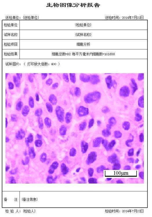 1、細(xì)胞分析:對深色或淺色細(xì)胞自動統(tǒng)計細(xì)胞總數(shù),每平方毫米內(nèi)細(xì)胞數(shù),單個細(xì)胞的直徑及面積。